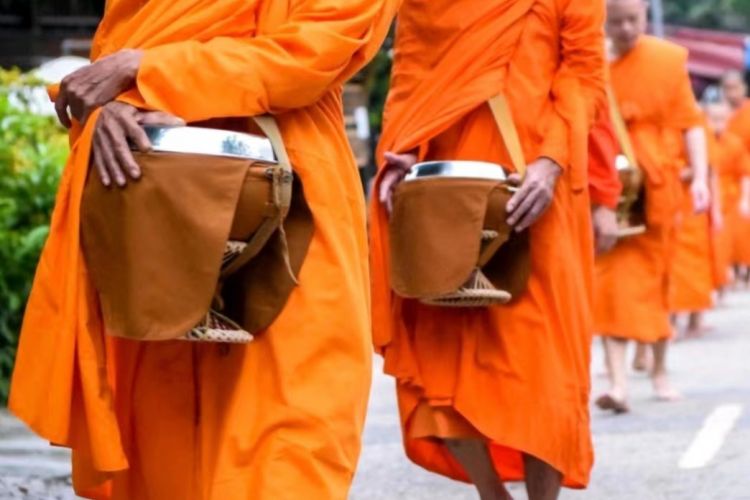 拉邦著名的仪式:(小乘佛教国家特有文化习俗)当地居民对走过的僧侣进行布施,体验老挝人民对